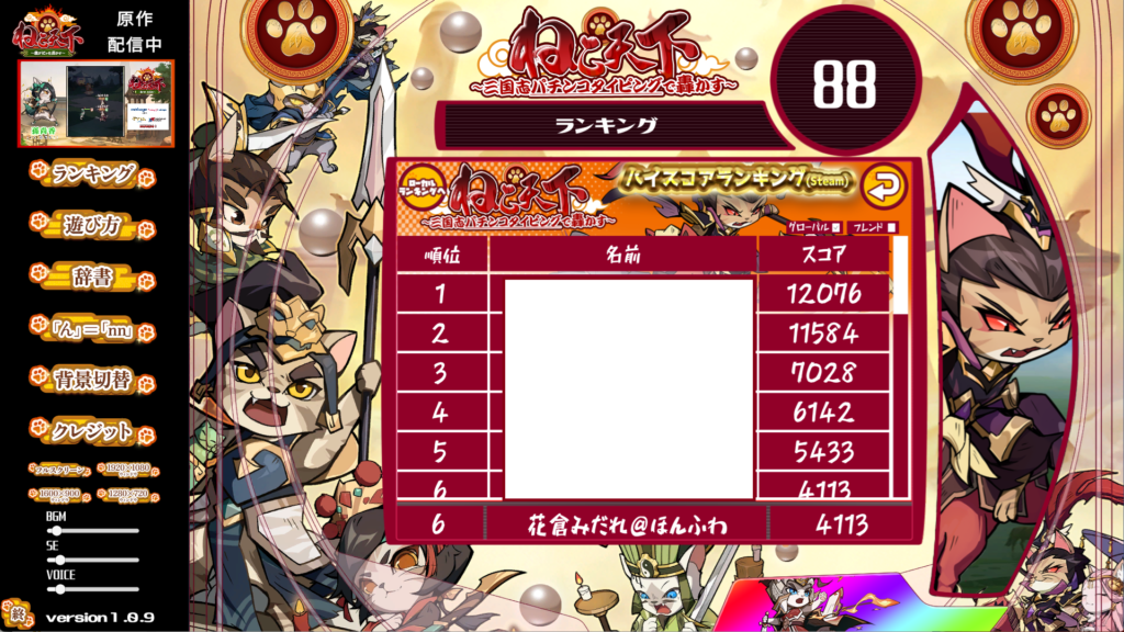 Steamにて、運営中のゲーム『ねこ天下~我がにゃを轟かす~』のスピンオフとして、タイピングゲームである『ねこ天下~三国志パチンコタイピングで轟かす~』の配信を開始します。プレゼントキャンペーンも実施